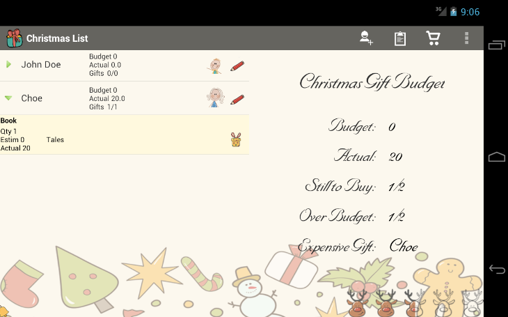 This handy app offers everything you will ever need to create a list of people whom you can't leave without gifts, make a list of gifts you are going to buy and keep your christmas budget under control.
